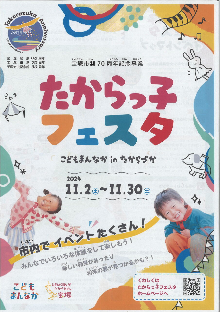 このイベントは市制70周年記念事業の一つ「たからっ子フェスタ」の一環イベントなのですが、11/2~11/30まで、他にもいろいろなイベントが開催されるので、要チェックです。