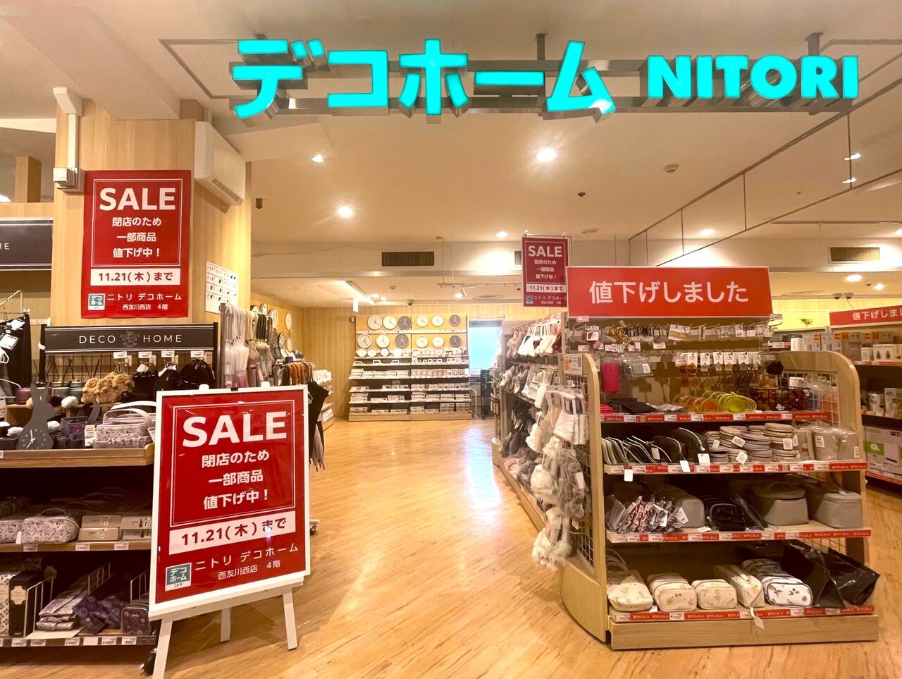 スタッフが伺った時(10月1日)には、西友日用品、靴店のSHOE-PLAZA、ニトリデコホームが閉店セールを行っていましたよ。