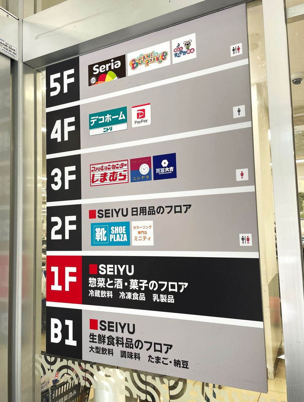 また2階には西友の日用品フロアや靴店があり、3階にはしまむら、4階にはニトリデコホーム、5階にはセリアと人気店も揃っていましたが、今回の閉店を持って建物が取り壊しになるそうなので、すべて閉店となるようです。