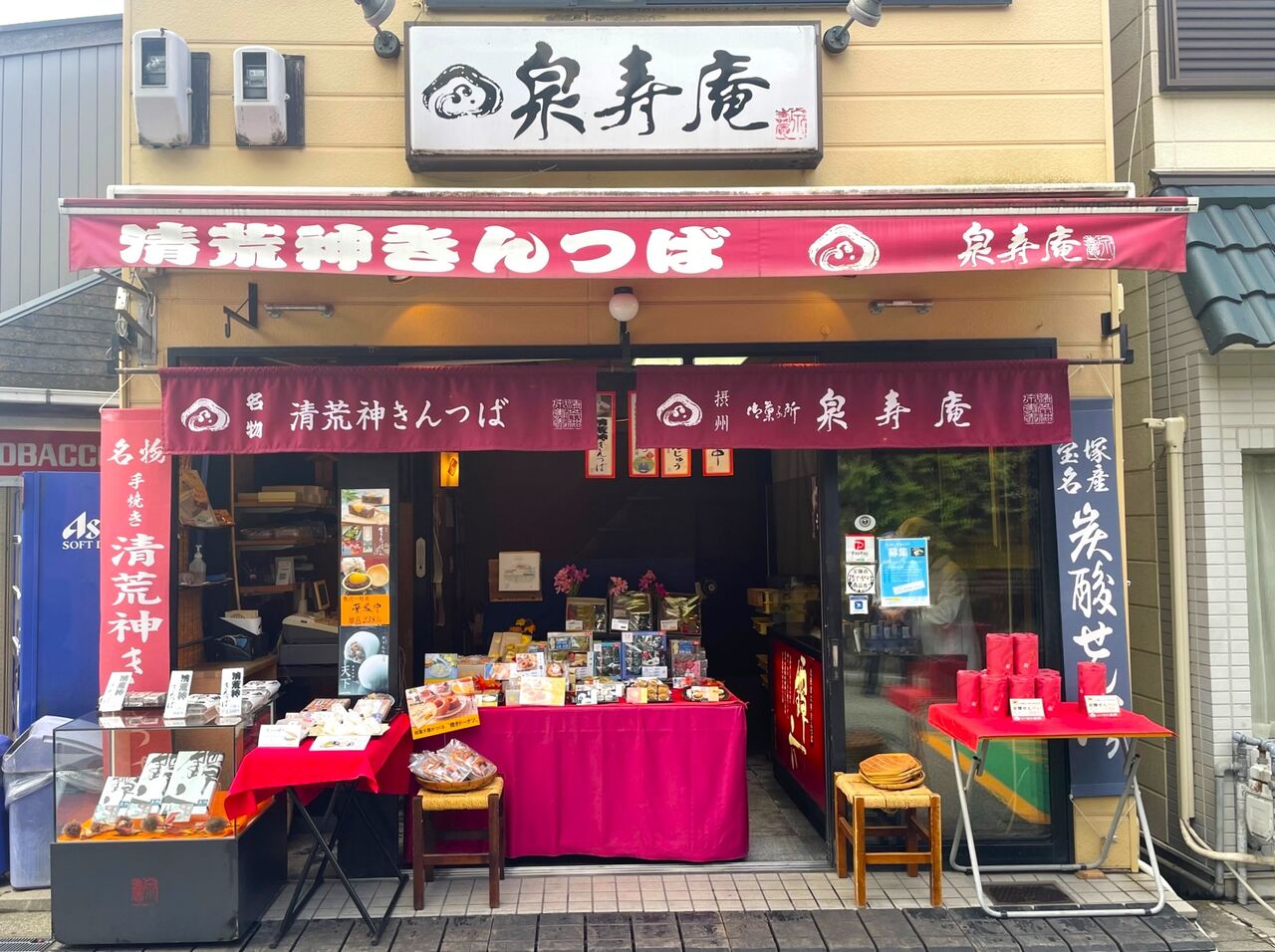 宮の町に本店がある御菓子所『泉寿庵』といえば老舗の和菓子屋さんで、最近では「IZUMIYA」のブランド名で洋菓子も販売している人気のお店です。その姉妹店となるのが清荒神参道にある「清荒神店」。