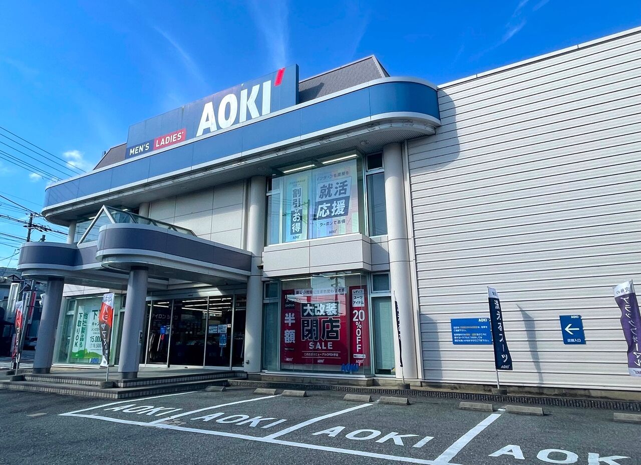 ところが新店舗とされる住所は宝塚市小林4-7-54となっており、検索してみると現在はこの住所に「AOKI宝塚小林店」があります。