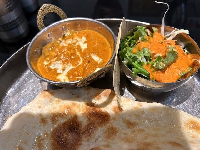 ナンとサラダ、パパド(豆の粉で作られた薄焼きせんべい)が付いています。