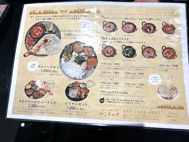 ワンプレートセット(チキン、キーマなす、キーマたまご)は1,000円で、他のカレーは差額をプラス。