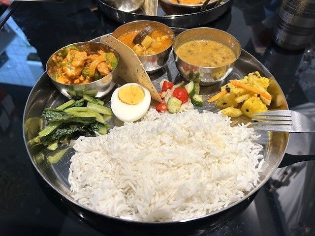 ダルバードとは、ダール(豆のスープ)にバート(炊いた米)にカレー味の野菜、お漬物を添えたネパールの国民食です。