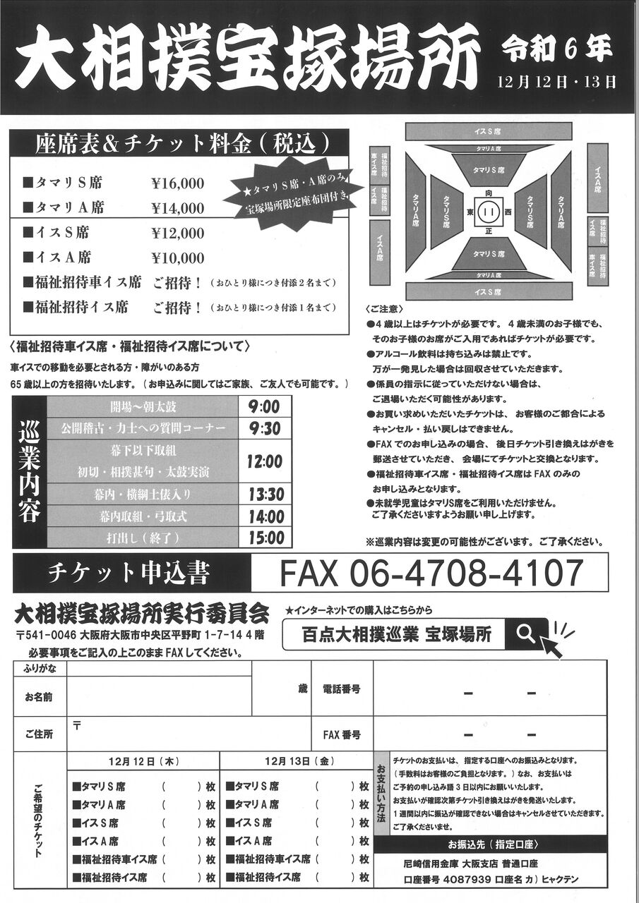 宝塚で6年ぶりに大相撲を見ることが出来るチャンス!