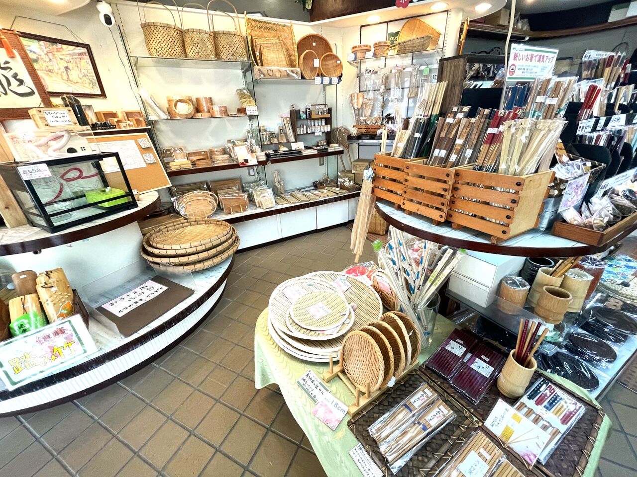 カゴやざる、お箸など竹を使ったさまざまな竹製品、いわゆる竹雑貨を販売しているお店です。