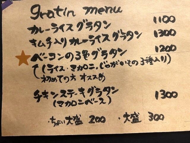 他にも冬限定のカキのグラタンやゆず胡椒チキンのグラタン、明太子チキンのグラタンなど心惹かれるメニューがいっぱいありました。「ライスorうどん」と書いてあったのですが、うどんの麺のグラタン?って食べたことないのですが、きっと美味しいのではないかと想像しています。