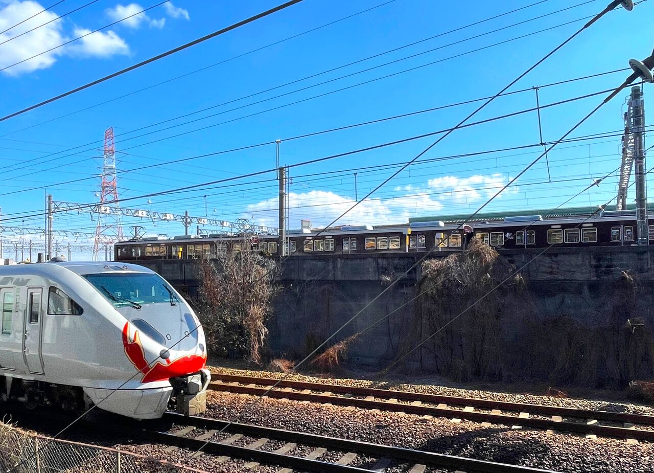 この日、JRの電車が行き来するのを何度かカメラにおさめていたところ、なんとこんな電車がやってきました。