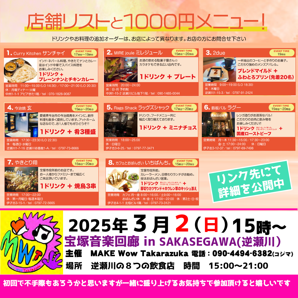 みなさん、明日は逆瀬川で音楽とグルメを楽しんではいかがですか?