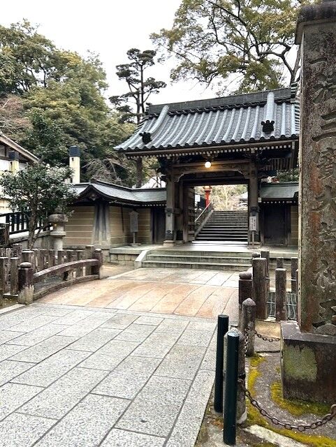 奥に見えるのは紫雲閣です。1階には「明月記 中山寺カフェ」があります。