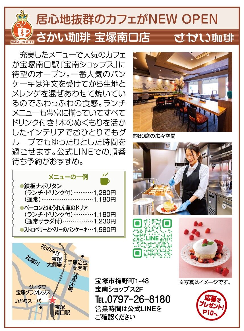 『さかい珈琲 宝塚南口店』の記事について、電話番号が誤って記載されておりました。