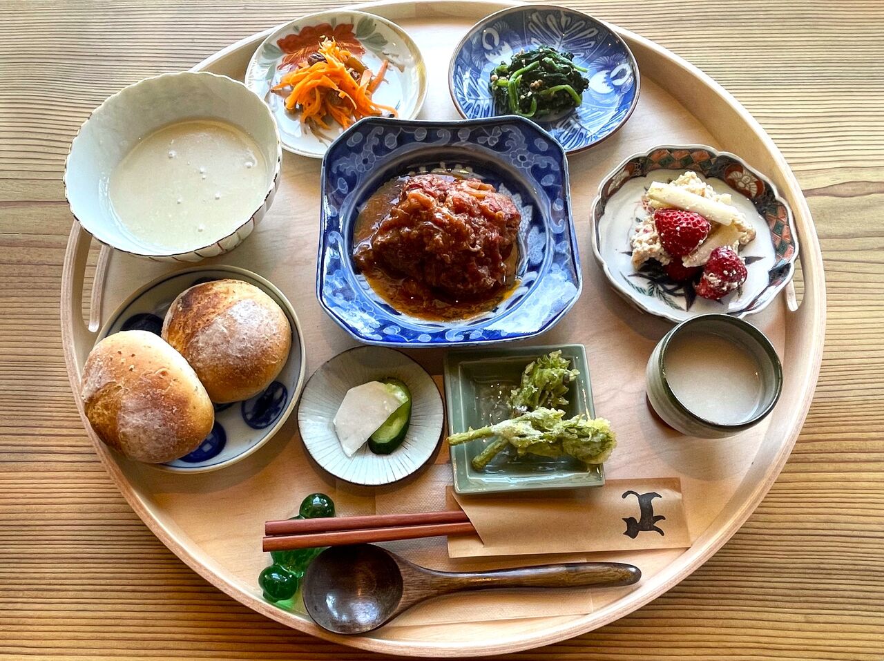 本店でのランチといえば、いろいろな具材が楽しめるサンドイッチになりますが、こちらでは麹を中心に発酵食品を使ったお膳スタイルのランチがいただけるんです。百合珈琲としても初めての試みだそう。