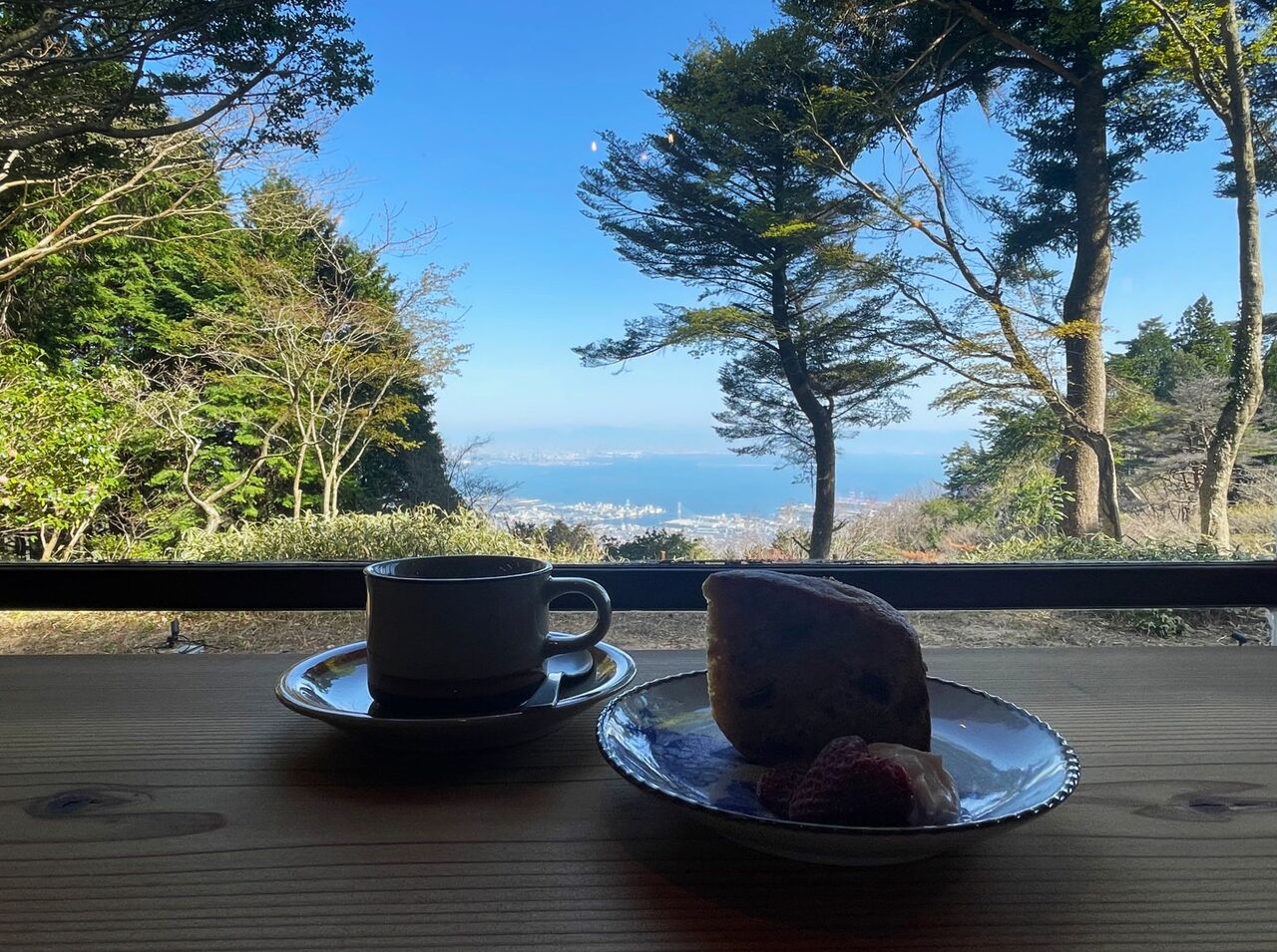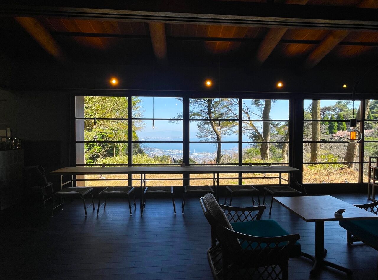 お店の方にお話をお伺いすると、車やケーブルカーで来られる方のほか、ハイキングで歩いて登ってこられる方もいらっしゃるのだそう。山上カフェならではですね。