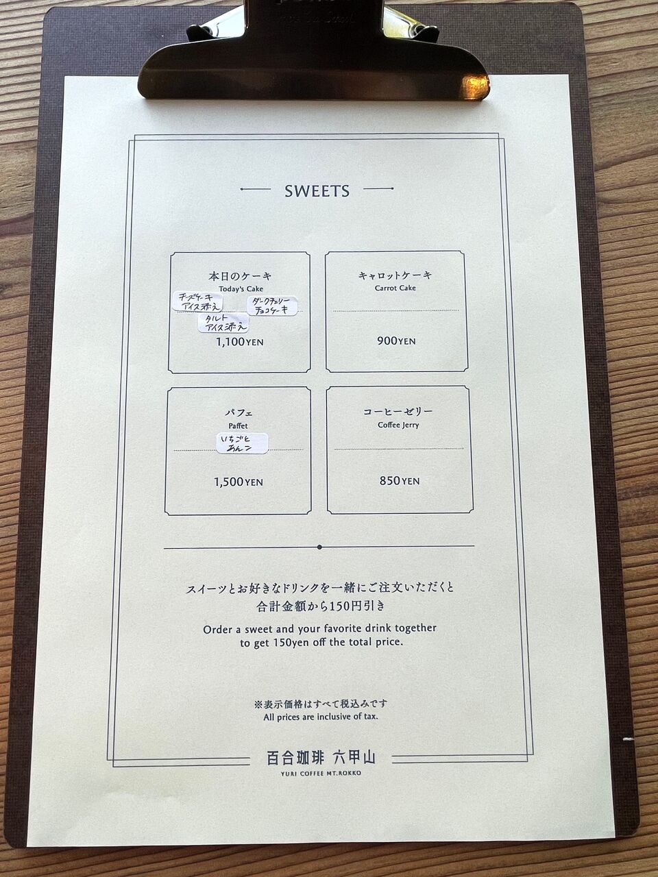 さらにスイーツをセットするとお会計が合計金額から200円引きになるんだそう。お得!ここは頼まない手はないですね。