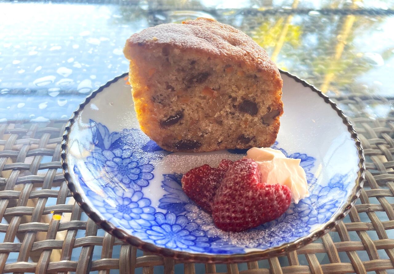 スイーツはすべて本店で作られているものと同じものだそうです。本店で出されるケーキがどれも美味しいのは周知の事実ですが、ここはテッパンのキャロットケーキにしました。