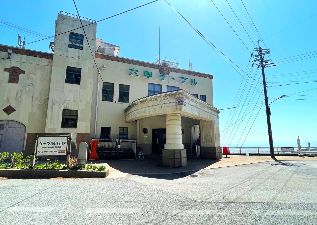 ケーブル山上駅に到着。この日はとってもいいお天気で暑いくらいでしたが、山の上は下界よりも少し涼しい感じがします。