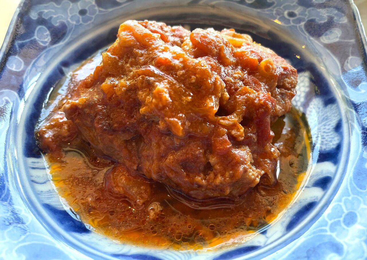 塩麹のみで味つけ、コトコトじっくりトマトで煮込んだハンバーグは、お肉がほろほろっと崩れるふわっとした柔らかさがありながらお肉感もしっかり残っています。
