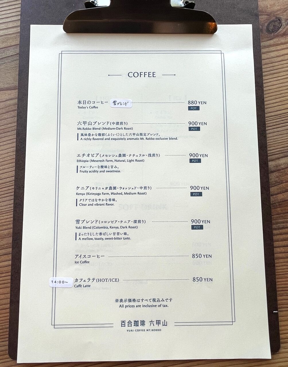 百合珈琲 六甲山店
