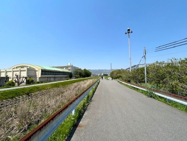 下の池公園を右手に見ながら進み、もっと先まで行こうと思ったのですが、天王寺川添いにサイクリングにぴったりの道がありました。写真の右手が県立伊丹北高校、左手が安倉中学校です。