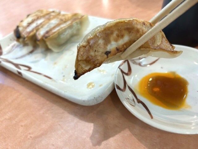 パリパリの皮に中身はジューシー、餃子は高温で焼き上げるのでお店で食べるのが一番です。