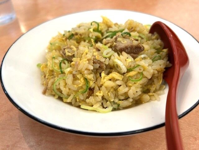 調理場から中華鍋を豪快に振っている音がしていました。パラッパラのチャーハンです。焼き豚、ネギ、たまごとシンプルなチャーハン!美味しいです。