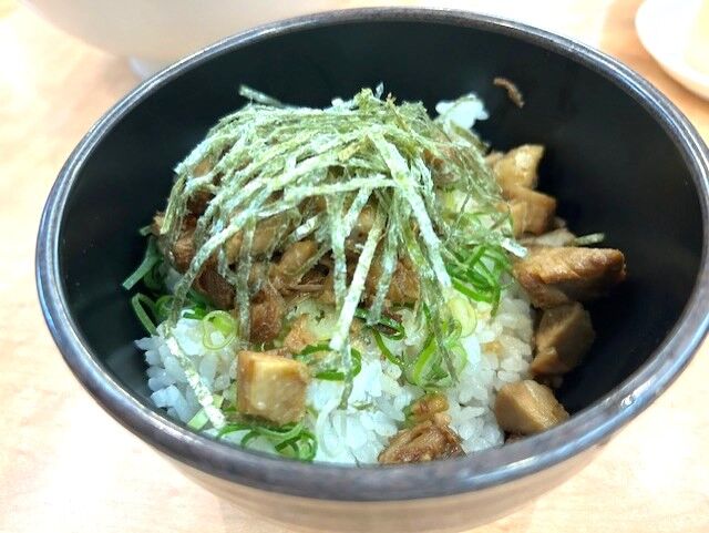 黒兵衛自慢の角切りチャーシューが入ったどんぶりのミニサイズです。ネギとのりもたっぷりと、普通サイズは750円なので、ラーメンと一緒に食べるのにはちょうどいいサイズですね。