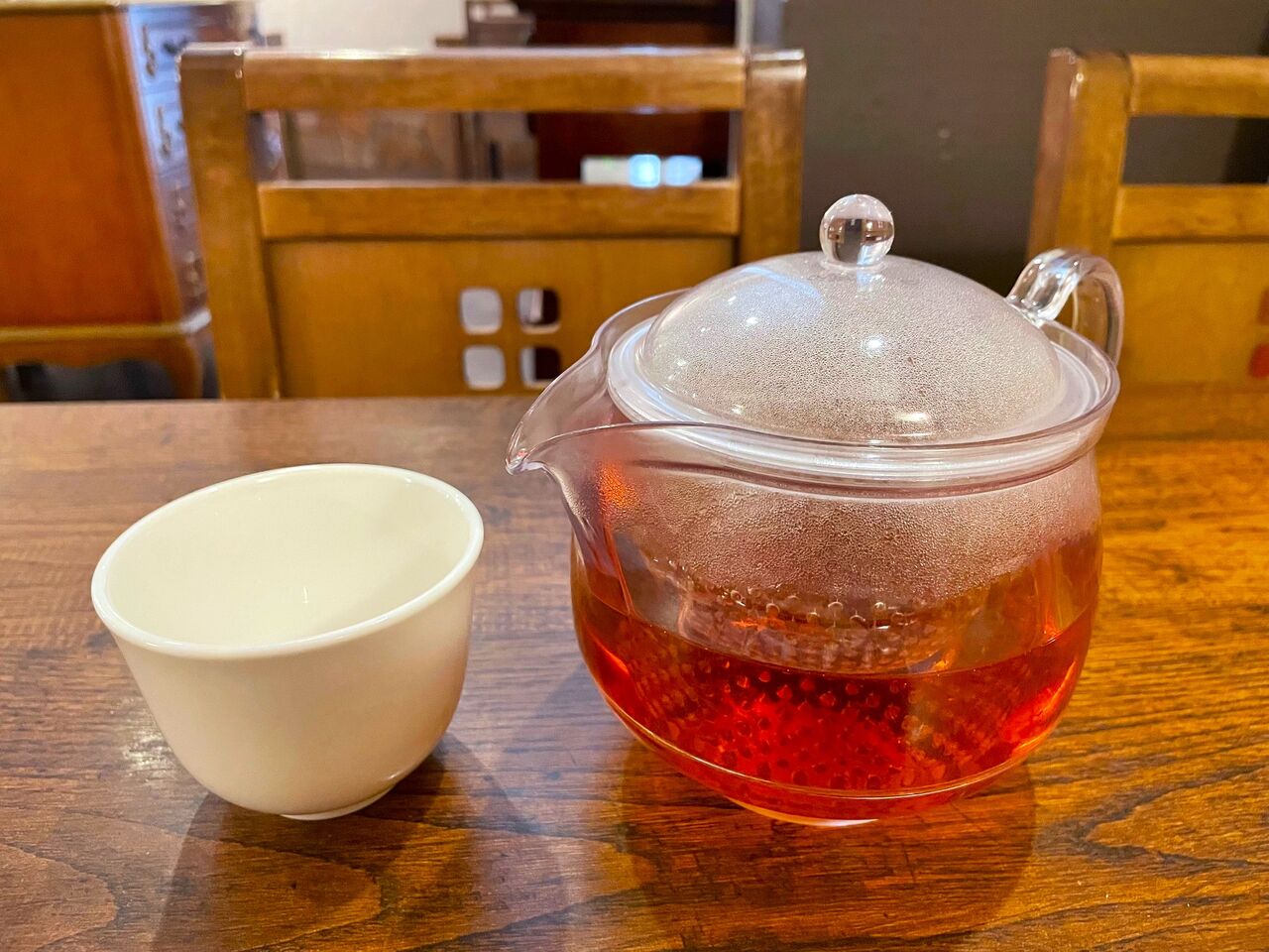 がっつり晩御飯のあとに、ホッと一息つけるポットサービス…ゆったりと3杯分、しっかりいただきました。