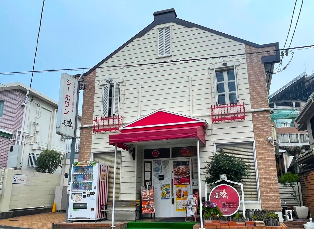阪急の宝塚南口駅から徒歩5分ほどにある、手作り飲茶と旬菜中華『シーホワン』(今回は夕方にお邪魔したので外観が少し暗め)。