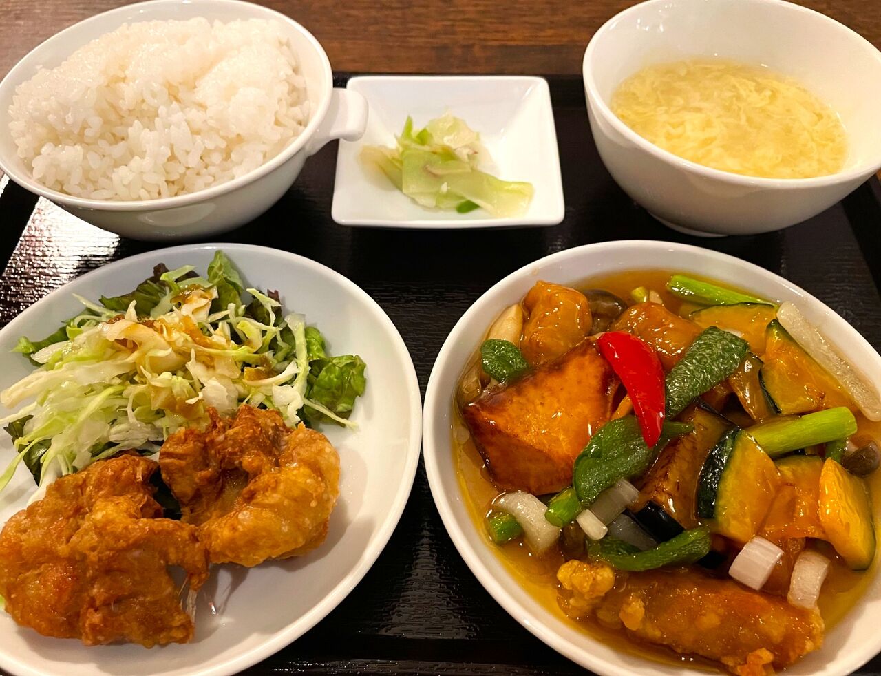 メインの酢豚のほかに、大きな唐揚げが2個セット。副菜というよりも、メインのおかずが2種類あるようで、とってもお得気分です。