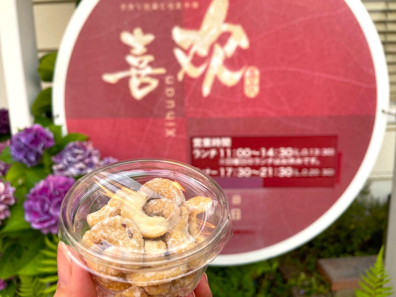 帰りには、「現金で1,000円以上のお支払いをしてくださった方にプレゼントです~」と“カシューナッツの砂糖絡め”をいただきました!