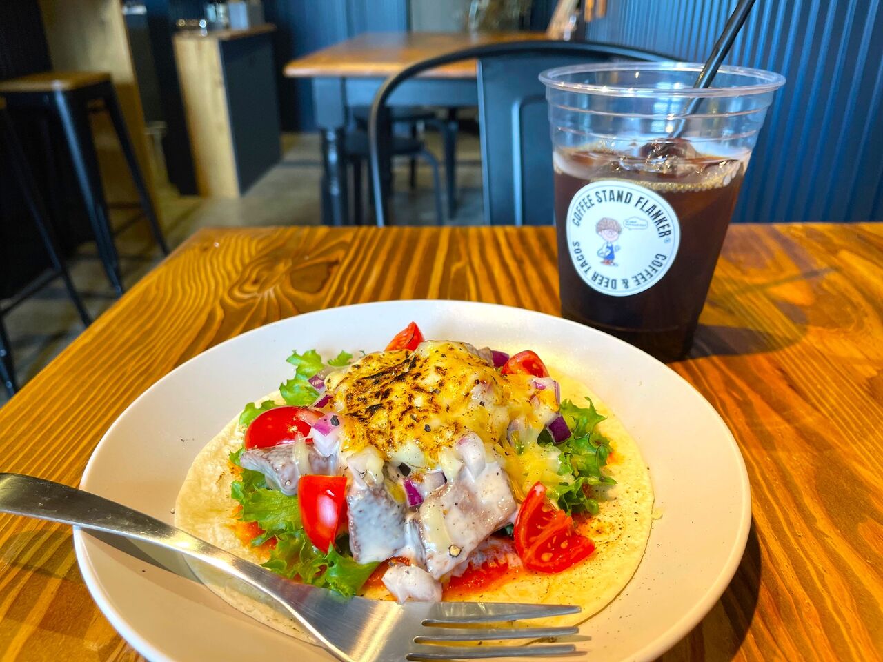 セットでお願いしたのは、FLANKERさん自慢のブレンドコーヒーをアイスで。久しぶりにいただきましたが、スッキリとした苦みと酸味のバランスでゴクゴク飲める一杯。タコスとも好相性でした。