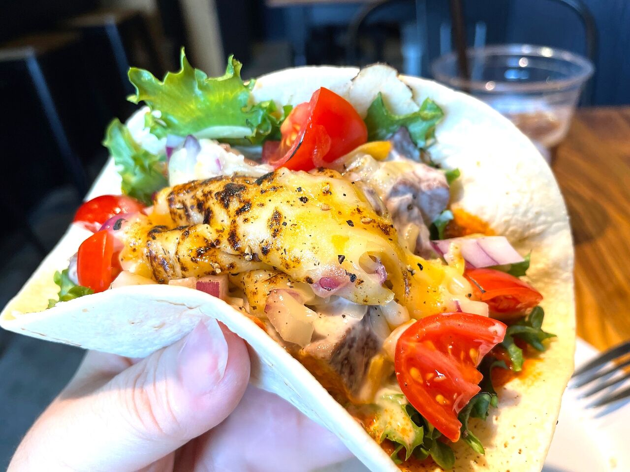 こちらを丸めてガブリ…と思っていたのですが、具材が多くて丸まりません!