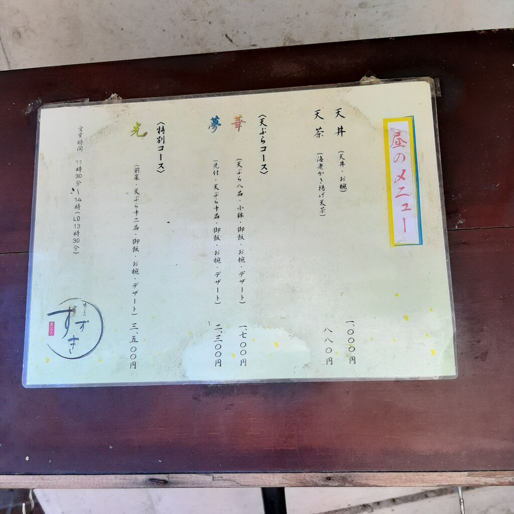 天丼1,000円! 天茶880円! 天ぷらコースもありますが、今日は天丼のお腹です。