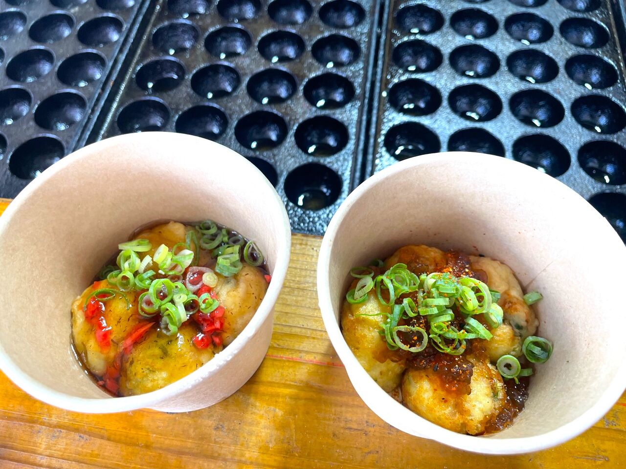 さて、メニューはまず定番のたこ焼き。こちらは個数やトッピングも自由に選べるようになっています。少し小ぶりなので、カリッとしたいくつでも食べられちゃいそうなたこ焼きが自慢だそう。