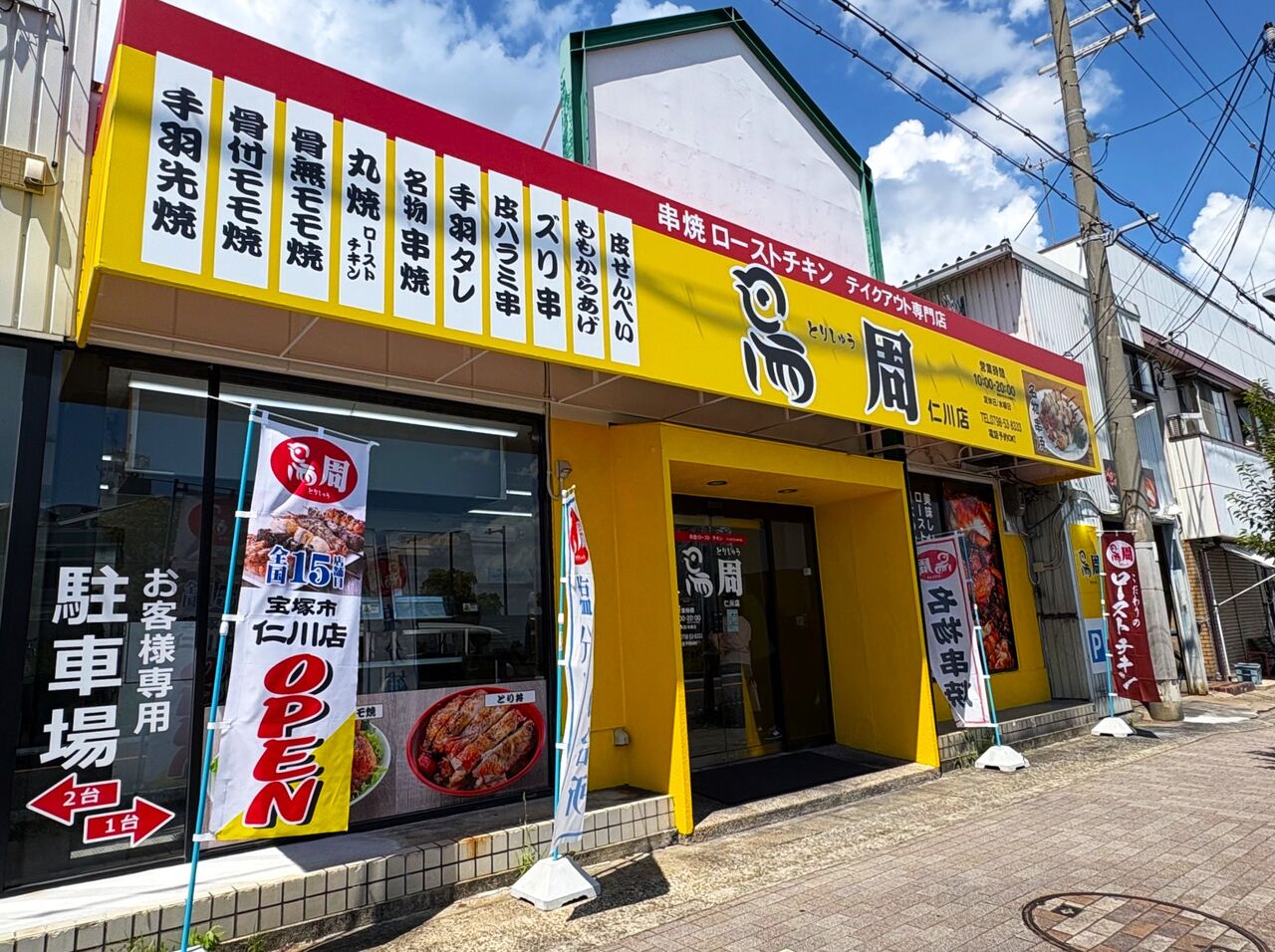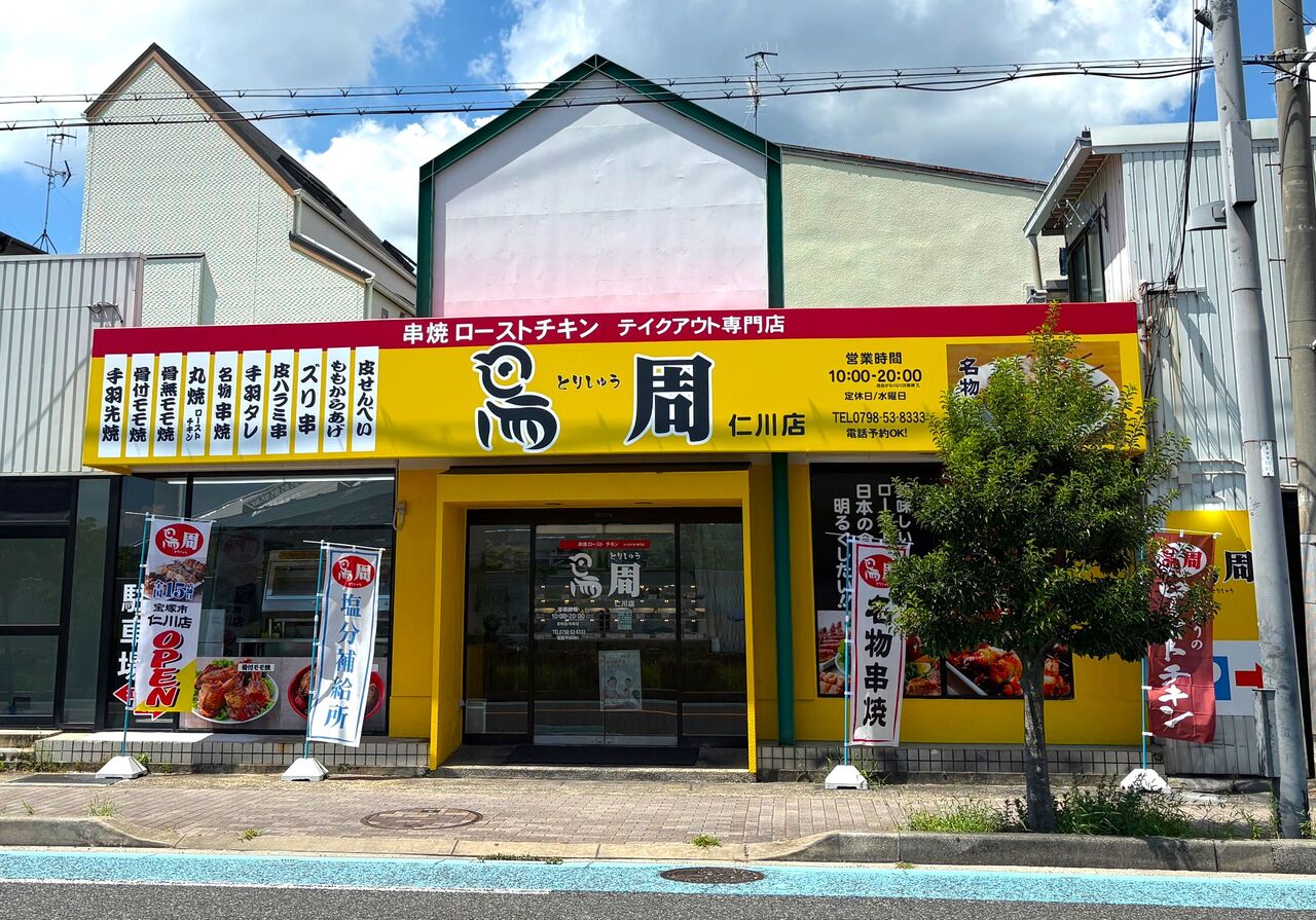 今月8日、仁川にオープンしたという『鳥周 仁川店』に行ってきました~! 場所は中津浜線沿いで、マクドナルドやローソンの近くにあり、ひときわ目立つ黄色い外観が目印です。