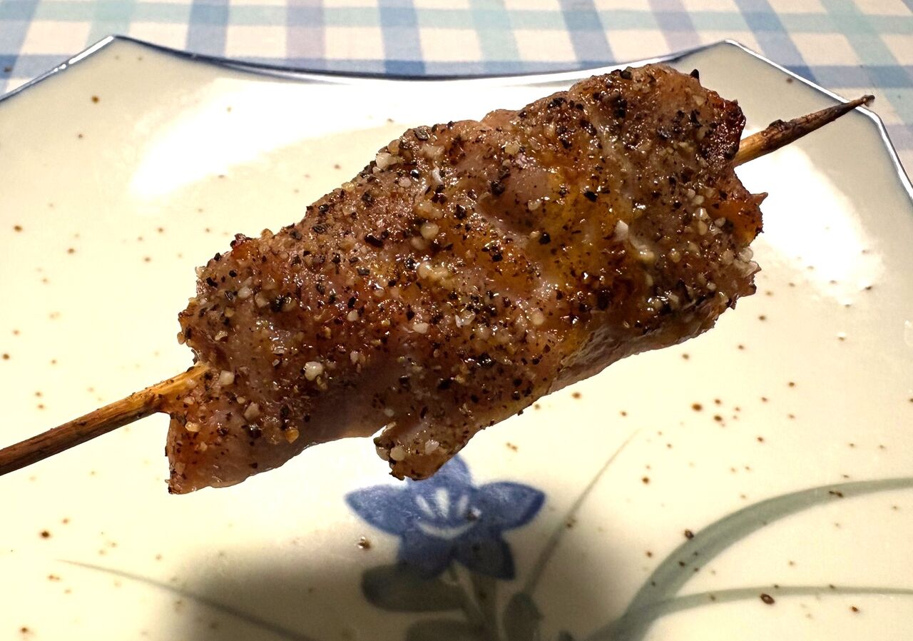 逆にガーリックモモ串は、パンチの効いたお味で何本でもいけちゃいそうです。暑い夏、アルコールにも合いそう~!