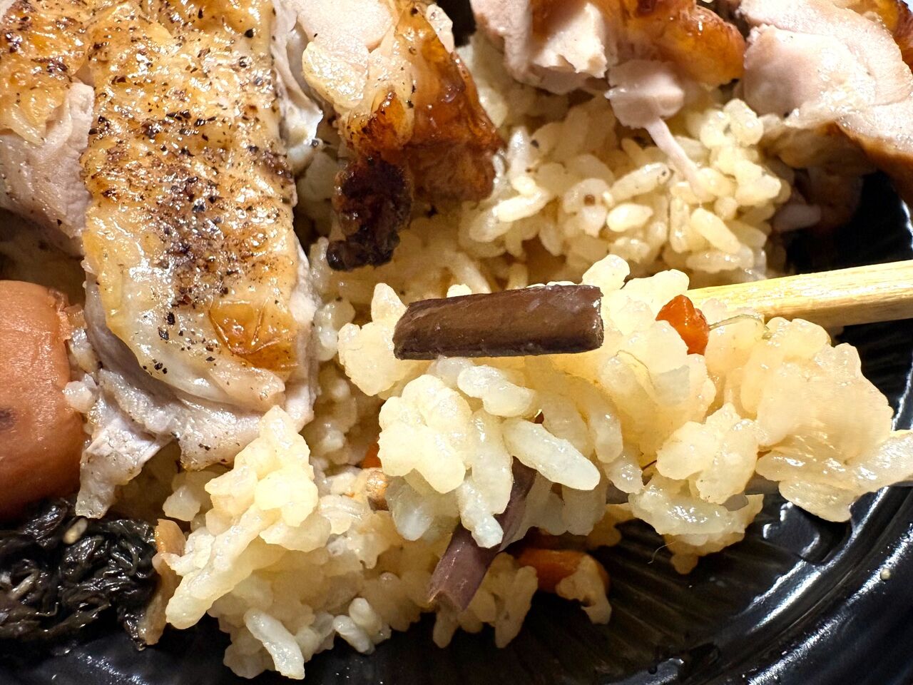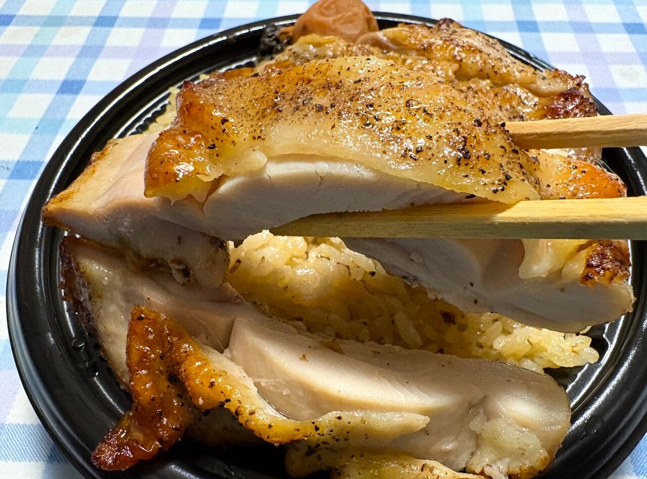 この甘辛なモモ焼と炊き込みご飯が最高のタッグで、口の中が躍り出しそうな美味しさなんです~。これは500gでもモリモリ食べ進められてしまいますね!