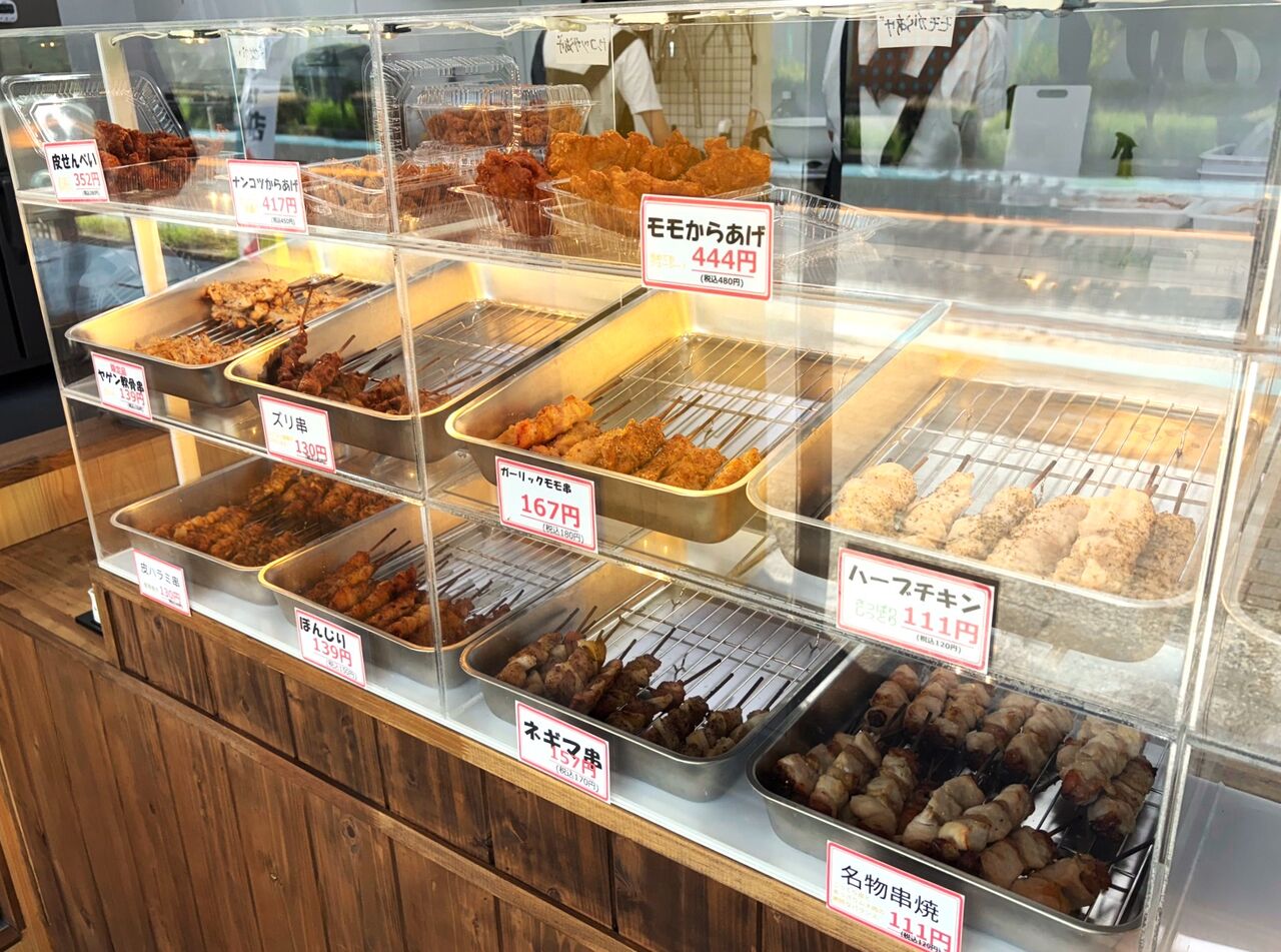 外ののぼりに「全国15店舗目」とあります。そう、こちらは本店がある岡山に多くの店舗を展開しているローストチキンはじめ鶏料理のテイクアウト専門店で、県内では2店舗目の出店。1日3000本売れる「名物串焼」が人気なんだそうです。