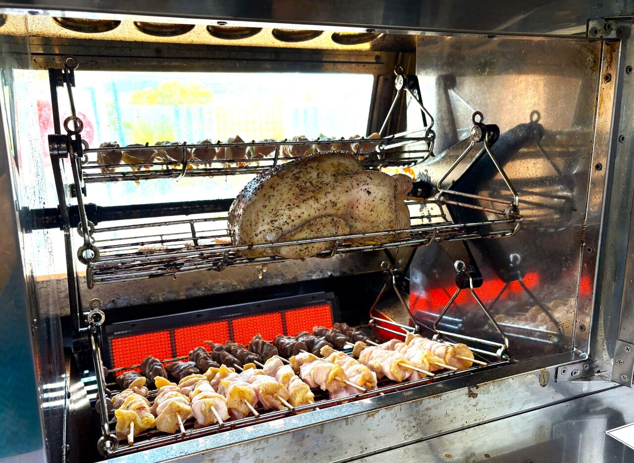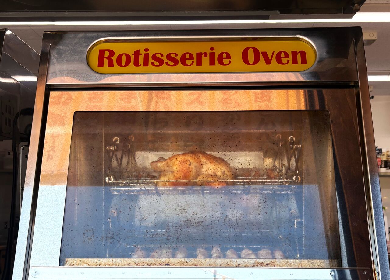 おお、これがお店自慢の回転式ロースターですね! たしかに丸焼きにされている鶏肉がくるくる回っています!(動画でお見せしたいッ!)