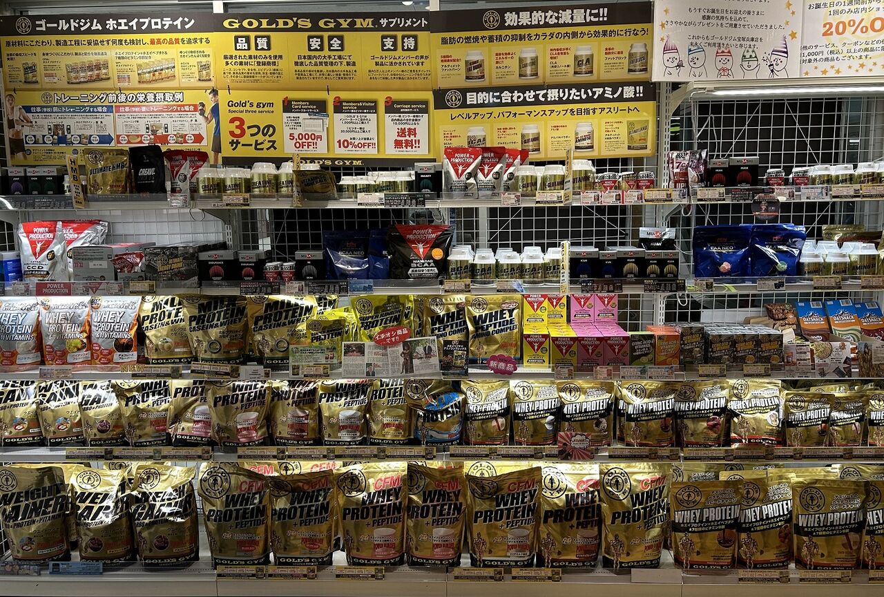 またフィットネス用品専門店を併設。サプリメントエリアも充実しています。
