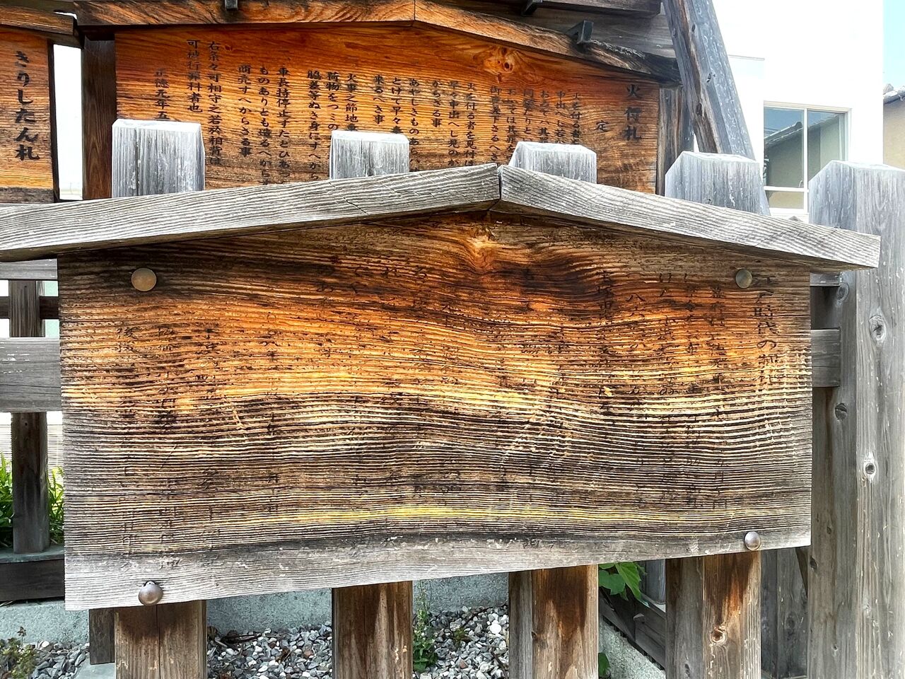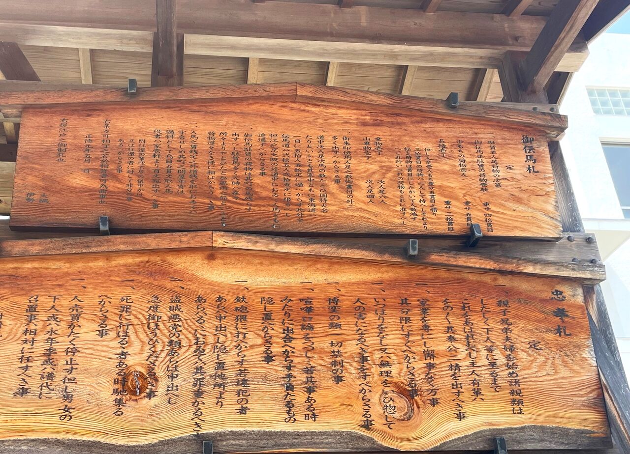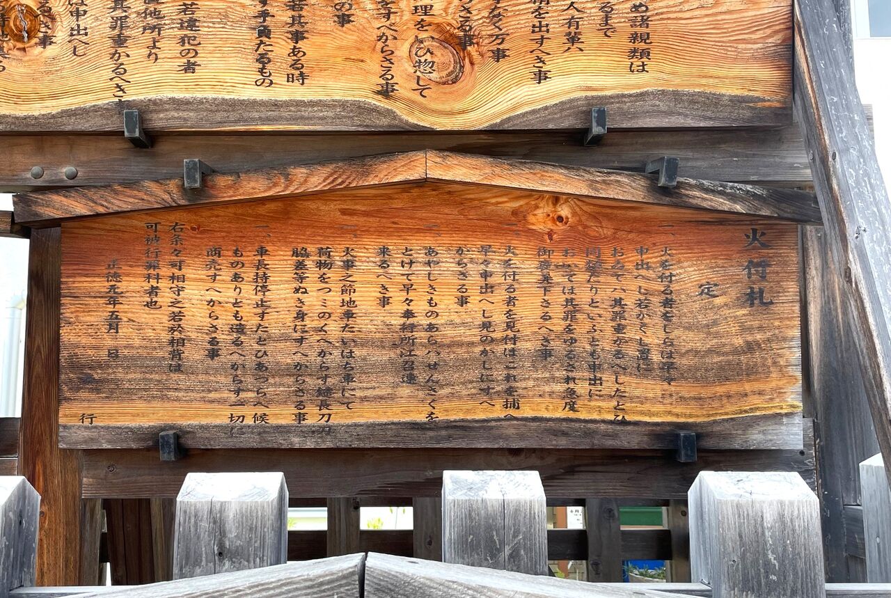 基本的にみんなの目に広~く触れるのが目的のものなので、当時は大通りの道端や寺社の境内など人の往来が多い場所にその札をまとめて掲げたのが、この高札場となったんだとか。
