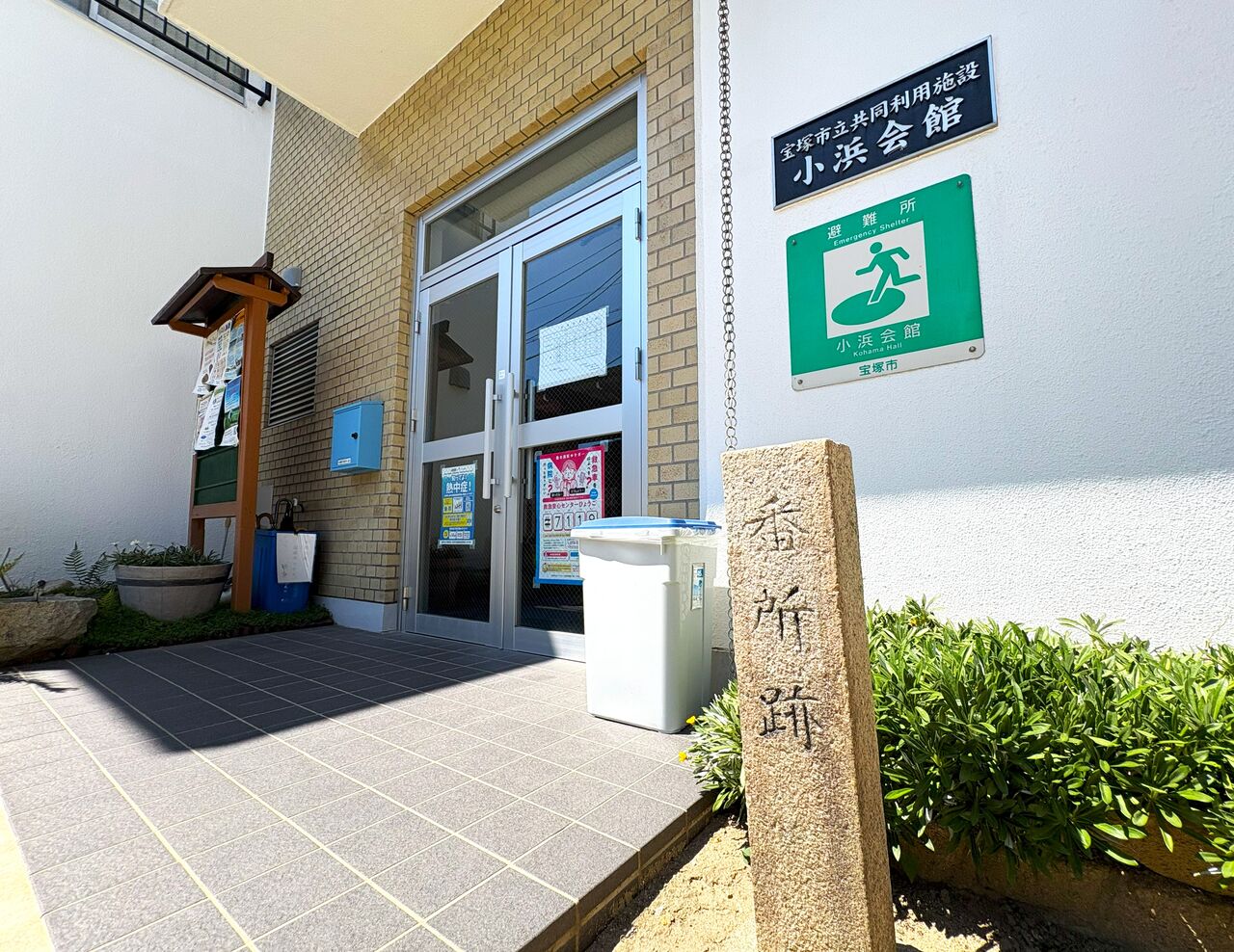 にしても昔の高札場から近いとはいえ、なぜ小浜会館の前庭に?と思いましたが、実はこの小浜会館は昔に代官所があった跡地なんだそうです~! 会館の入口前にある小さな碑に「番所跡」とありました。