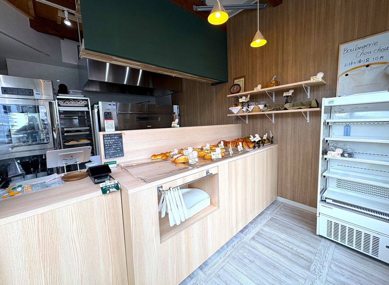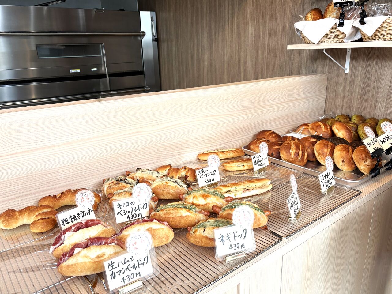 いざ、入店! 既にパンが売り切れて空いているスペースもありますが陳列棚の向こうにはオーブンが見えていて、出番を待つパンの焼けるいい匂いが店内に漂っていますよ~。