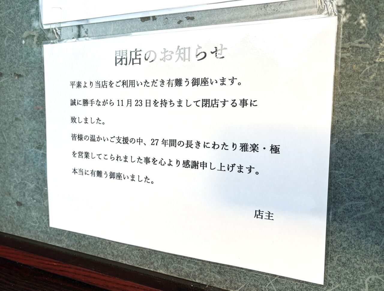 現地へ足を運んでみると、確かに店頭には閉店のお知らせの貼り紙がありました…。
