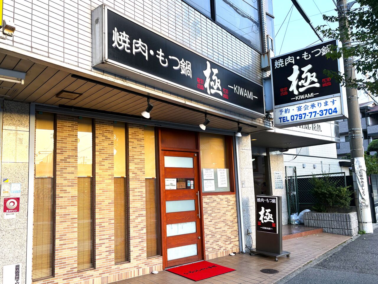 お手頃価格で美味しいと人気の『焼肉・もつ鍋 極(きわみ)』さん。小林5丁目交差点と高司1丁目交差点のちょうど間くらい、中津浜線沿いにあります。