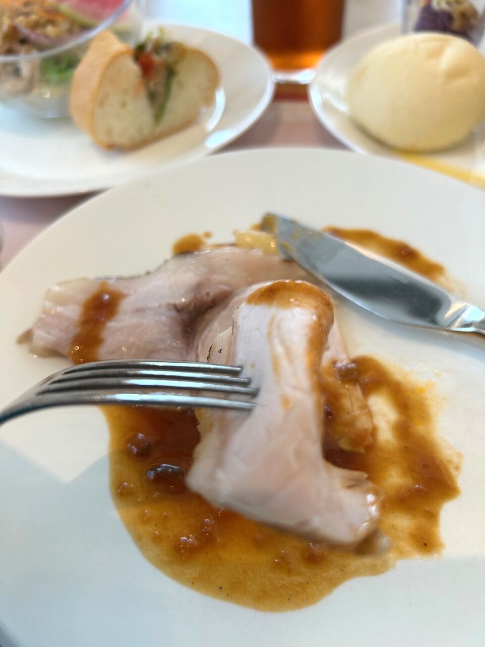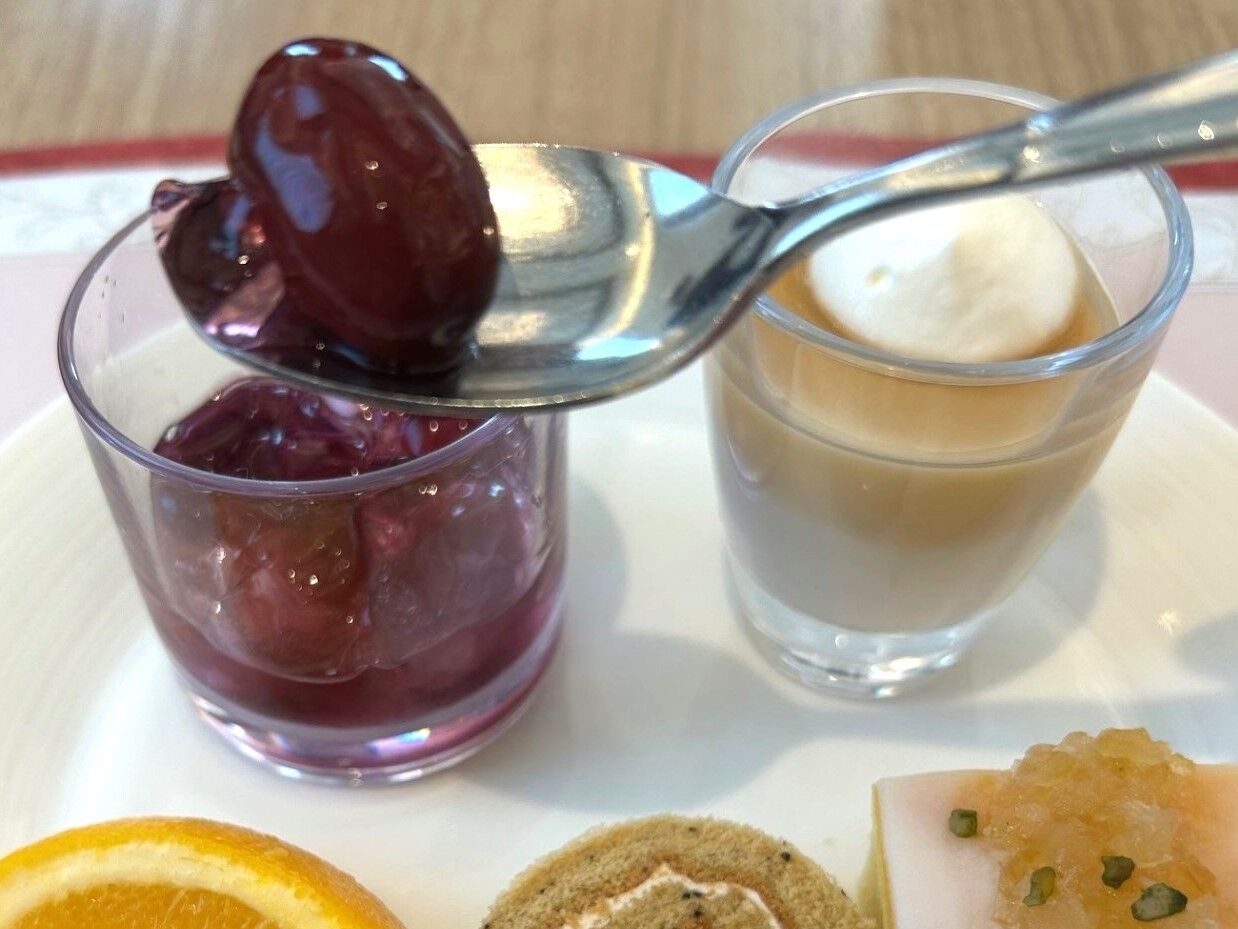 デザートプレートも作ってもらったので、ぶどうのゼリー・ジュレフリュイも作ってもらうのかと勘違い!「こんなに大きなお皿!そんなに食べられない!」と思ってしまった(笑)。取り分け容器があるのが全く見えていなかったのです。