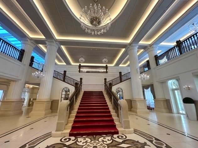 宝塚大劇場の大階段を思わせるロビーは、いつ行っても素敵です。「アンサンブル」は2階、赤い絨毯を上って行くのも良き♪ エスカレーターやエレベーターもあります。
