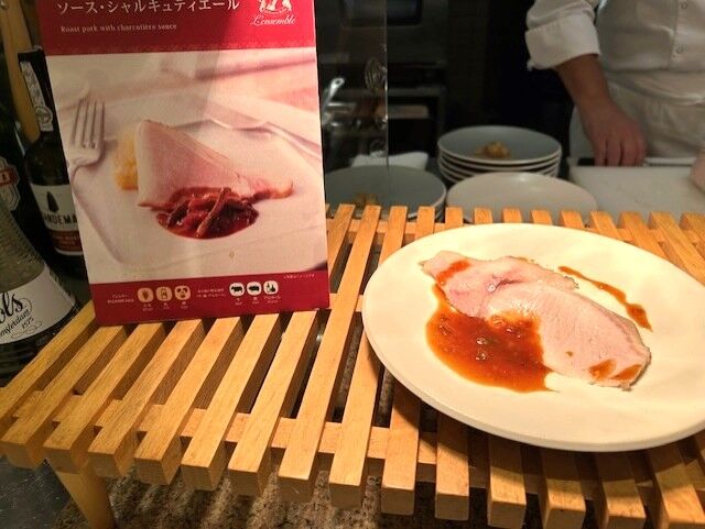 シャルキュティエールソースは少し酸味があり深みのあるソース、柔らかなローストポークともよく合いました。