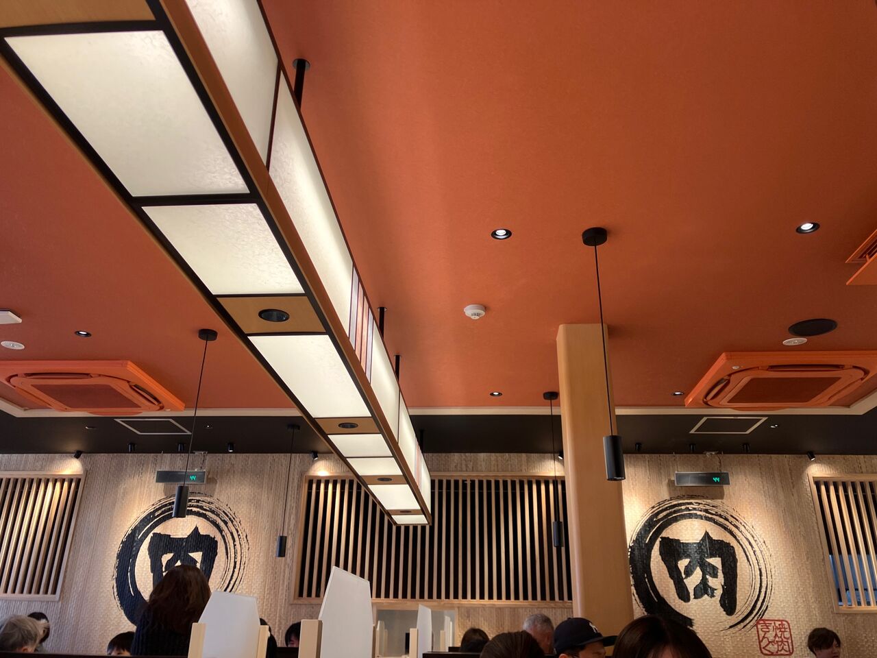 店内はこんな感じ。大勢のお客さんでほぼ満席だったので、天井と壁面で雰囲気をご紹介。