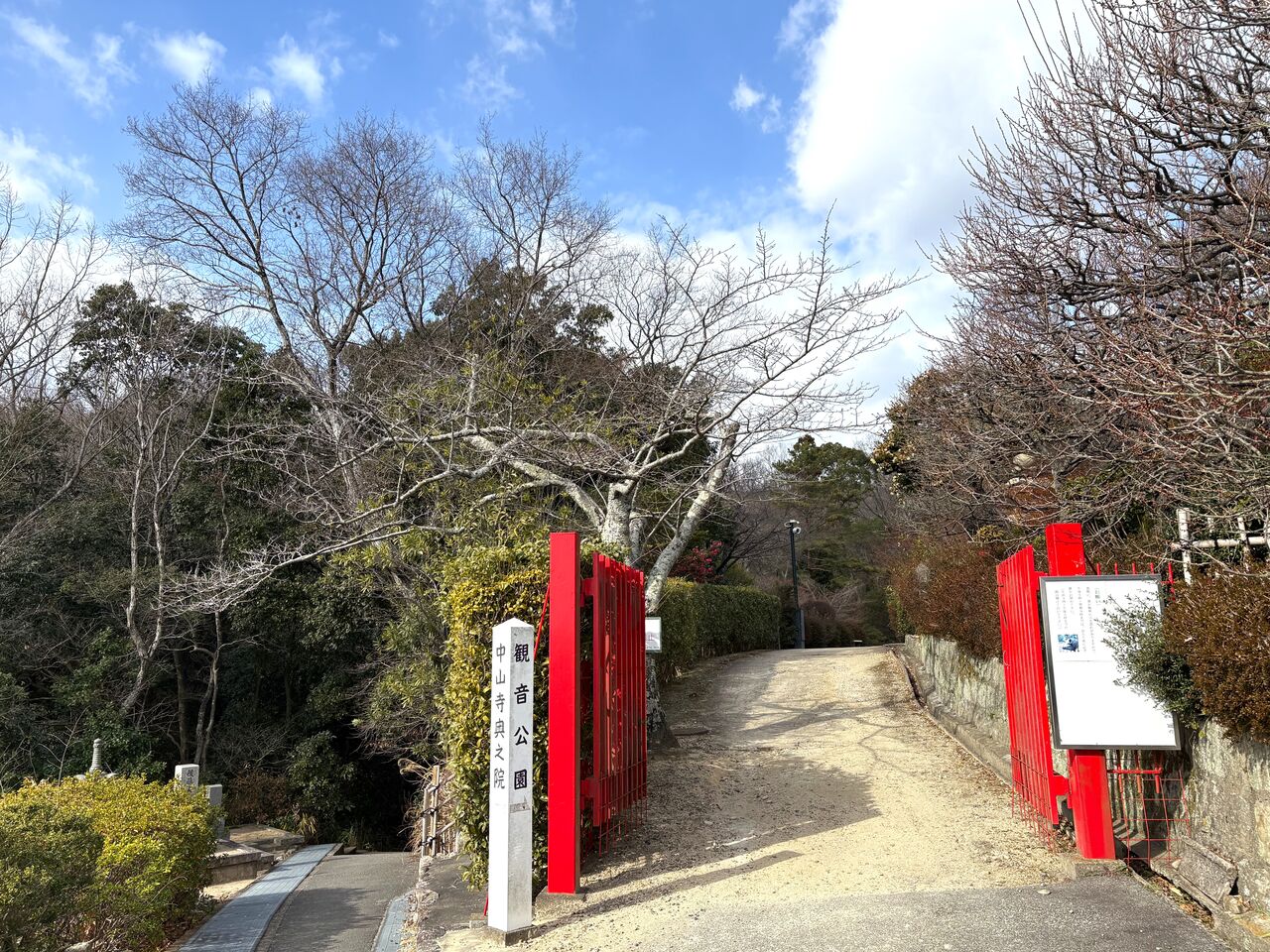 そう、こちら中山観音公園。みごとな梅林も有名な場所ですよね! さすがにまだ梅は咲いていませんでしたが、この入口からズンズンと中へ歩みを進めていきます。